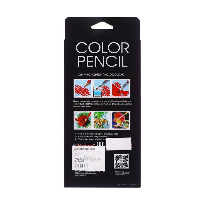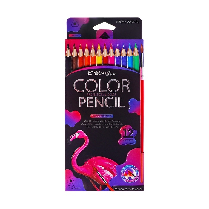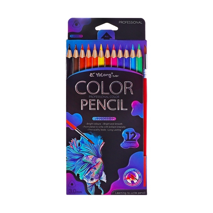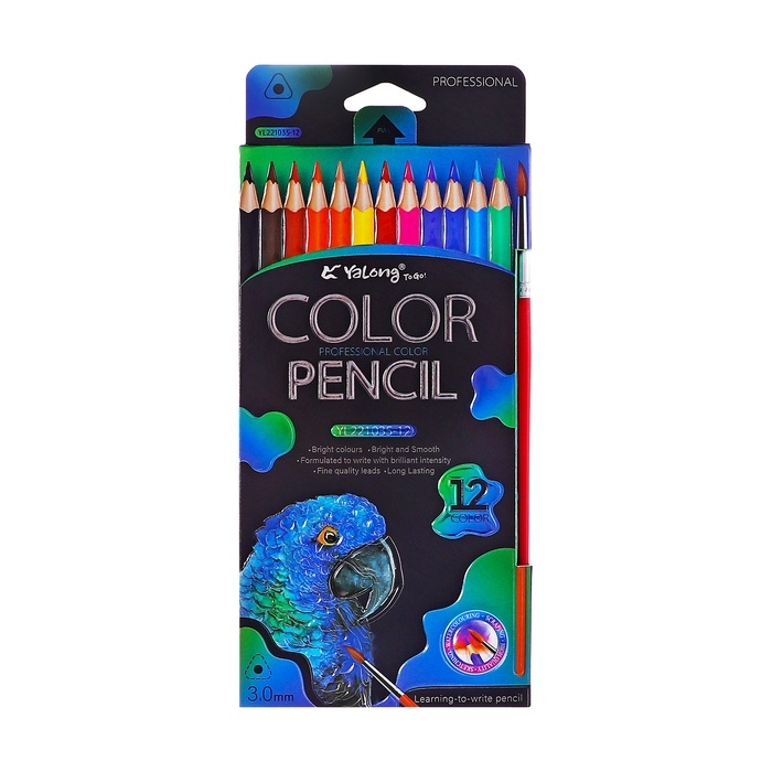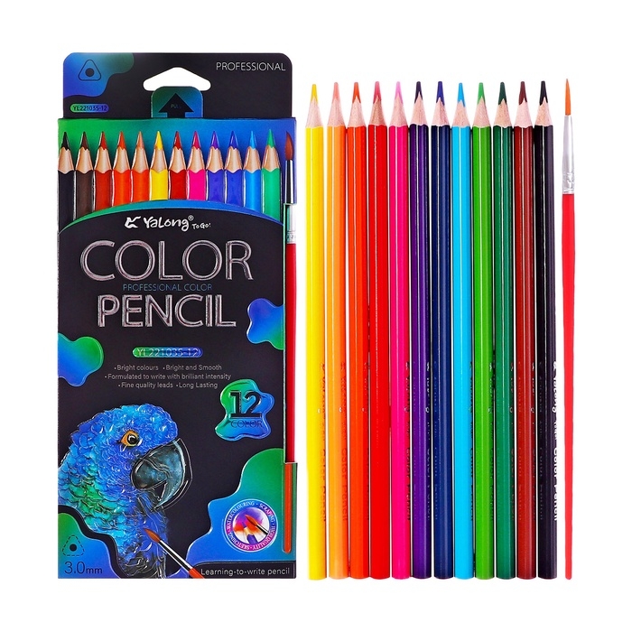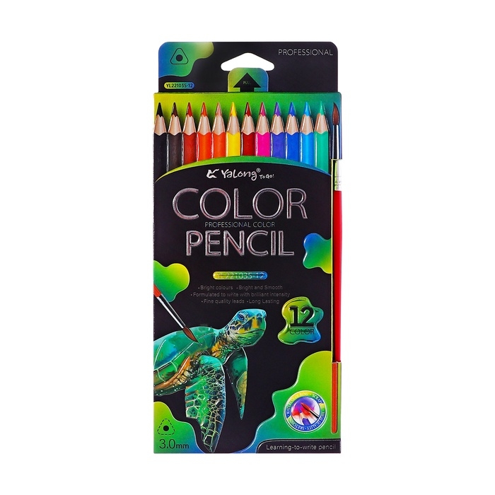 Карандаши акварельные 12 цветов, в картонной коробке, треугольные,дер, с кист,Животные МИКС