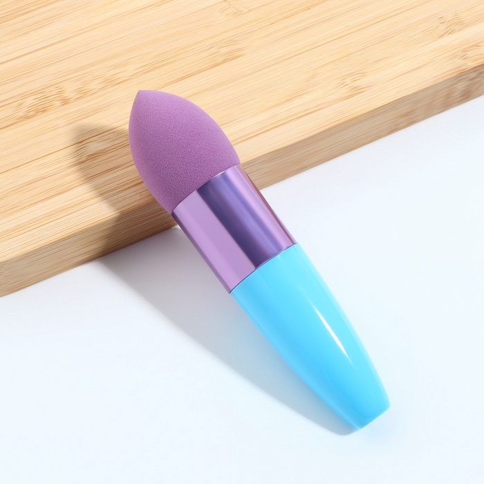 Спонж для макияжа с ручкой «Капля», 10 × 2,5 см, цвет голубой/фиолетовый