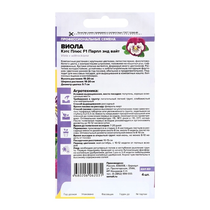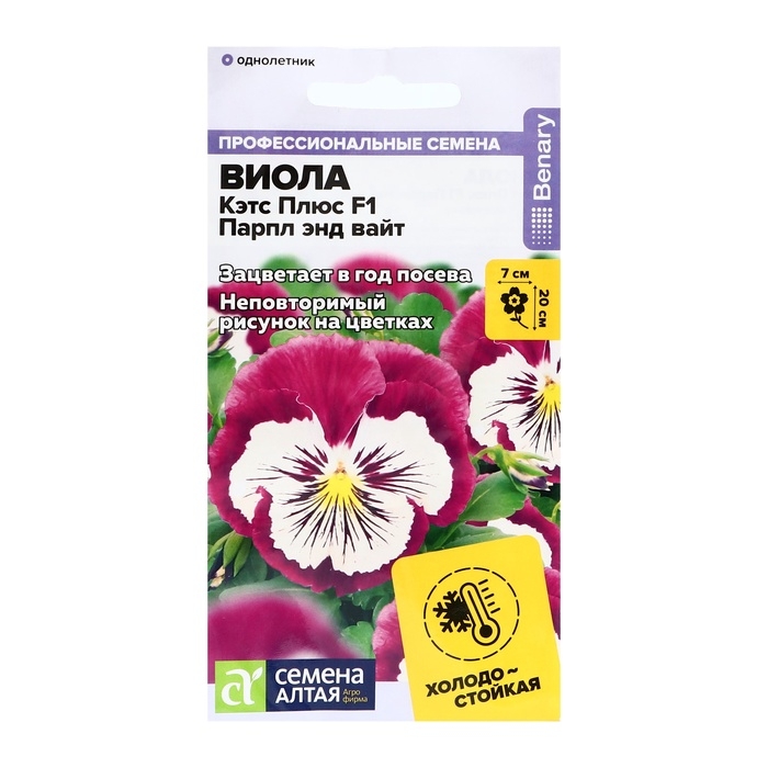 Семена цветов Виола Кэтс Плюс F1 Парпл энд Вайт, ц/п, 4 шт.