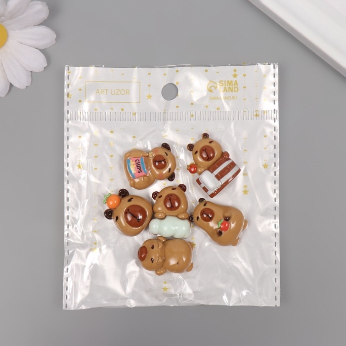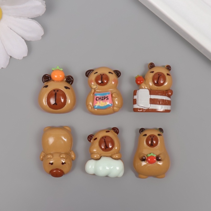Декор для творчества пластик "Капибара" ассорти набор 6 шт 2х1,7х1 см
