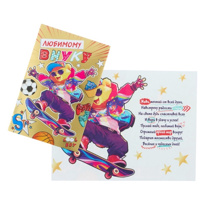 Открытка «Любимому внуку!» конгрев, тиснение, 12,5 × 19,5 см