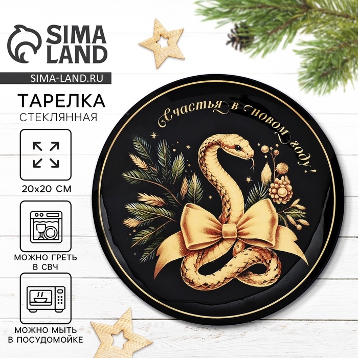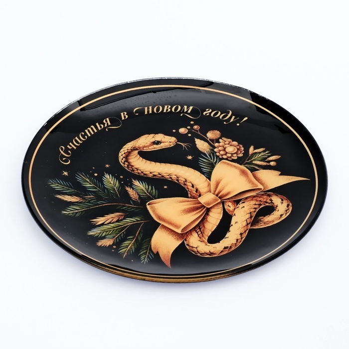 Тарелка стеклянная новогодняя Дорого внимание «Счастья в Новом году», 20 см