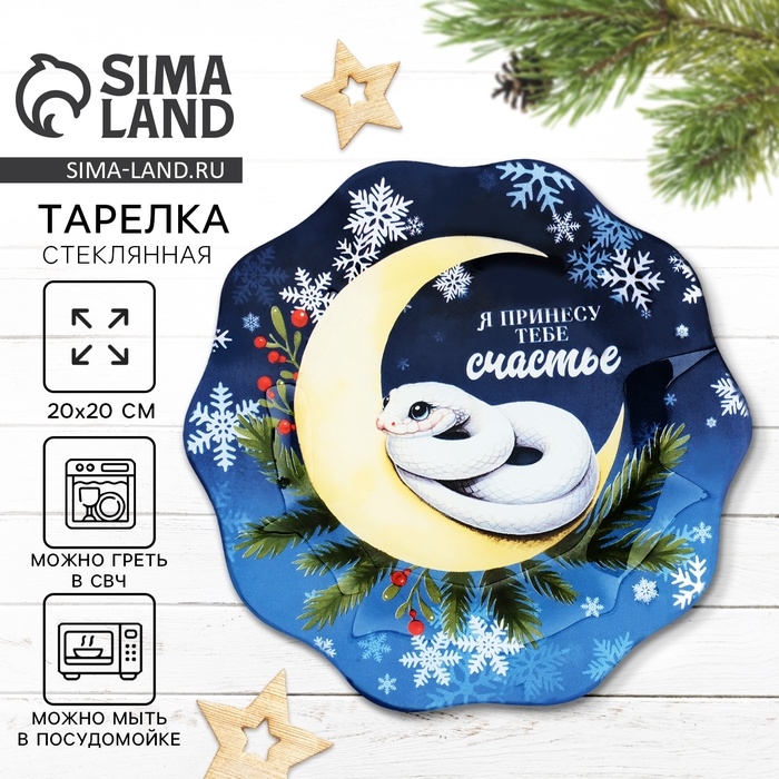 Тарелка стеклянная новогодняя Дорого внимание «Я принесу тебе счастье», 20 см