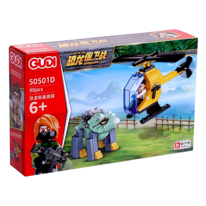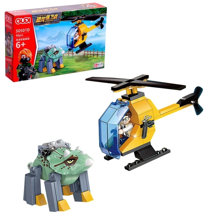 Конструктор Дино «Охотник на вертолёте против динозавра», 90 деталей