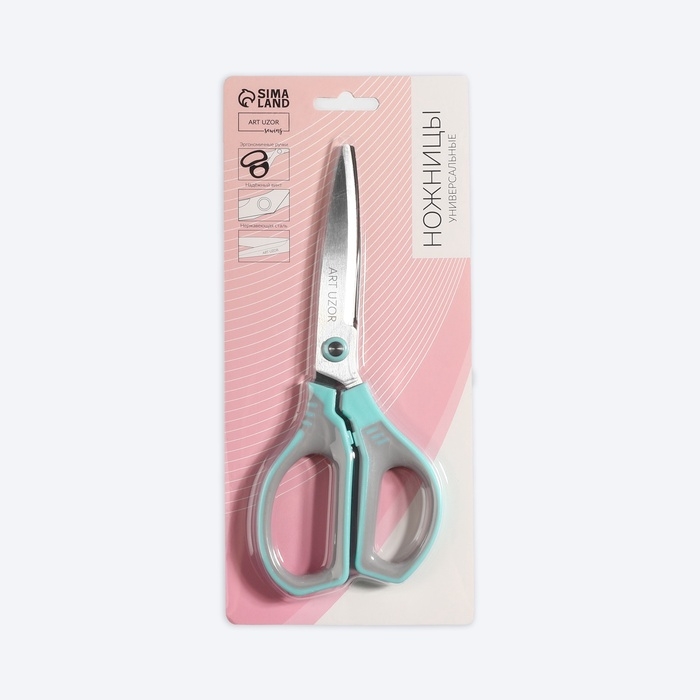 Универсальные ножницы подходят для работы с бумагой, картоном, полиэтиленом. Ножницы удобно лежат в руке, а их острые лезвия обеспечивают идеально ровный срез.