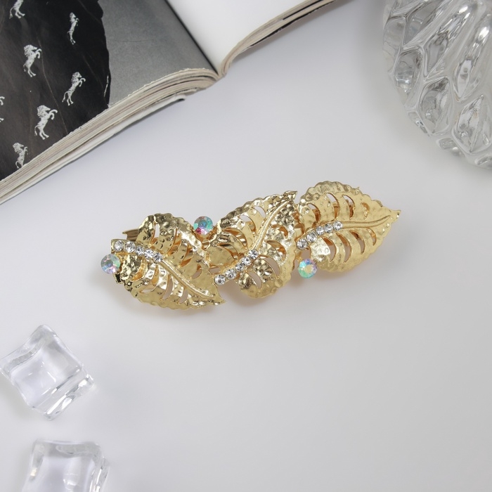 Заколка-автомат "Эйвери" листья, 8,5 см, золото
