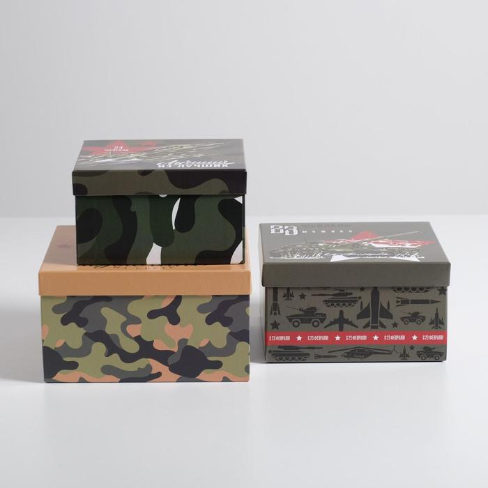 Набор коробок 3 в 1, упаковка подарочная, «23 февраля», 18 х 18 х 10‒22 х 22 х 12 см
