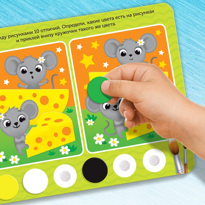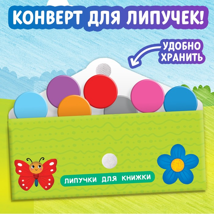 - Мягкие липучки клеятся в книгу, а твёрдые — на кружочки.