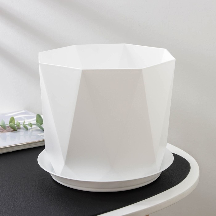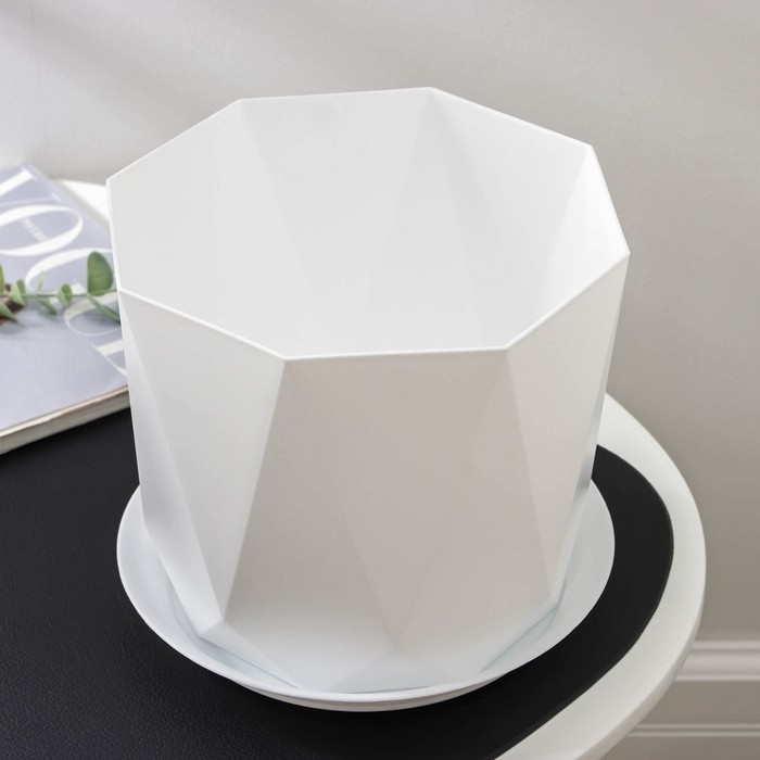 Горшок для цветов с поддоном «Призма», 4,7 л, цвет белый