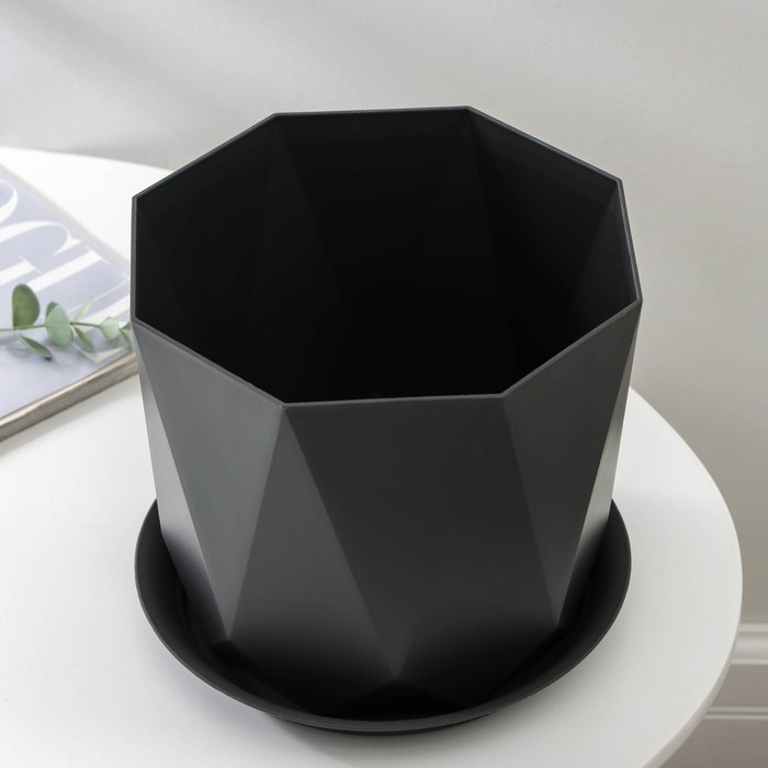 Горшок для цветов с поддоном «Призма», 4.7 л, цвет графитовый
