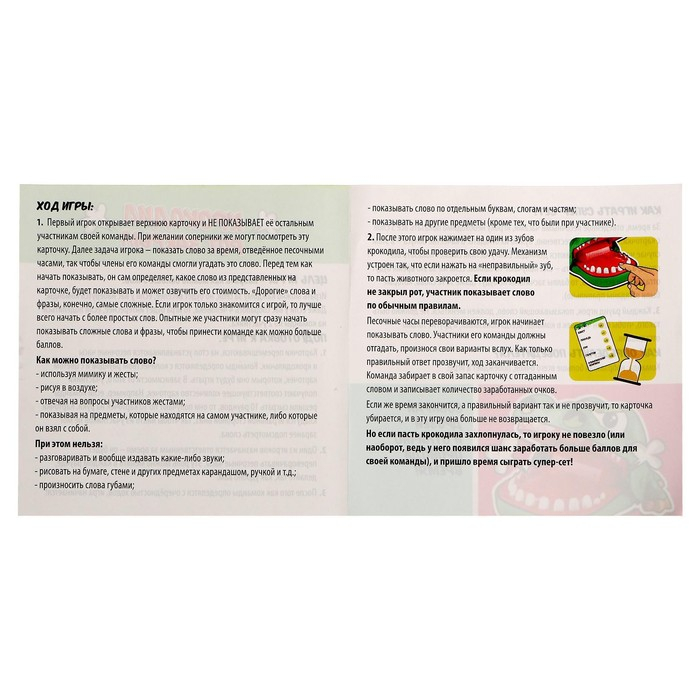 Более подробные правила игры смотрите в инструкции. Игра рекомендована детям старше 7 лет. Рассчитана на 3 и более участников. Попробуйте отгадать 500 слов и стать победителем битвы интеллектуалов!