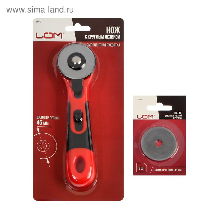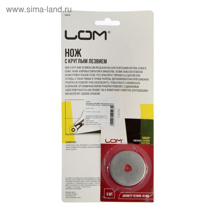 Дисковый нож ЛОМ, пластиковый корпус, лезвие-ролик, 45 мм + ПОДАРОК лезвия-ролики - 3 шт.