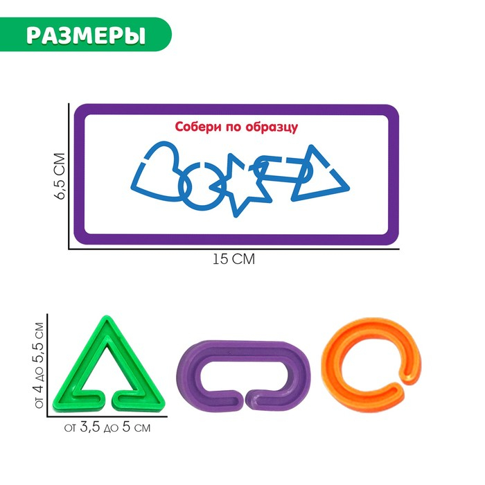 Размер деталей: 4 × 3,5 × 0,5 см — 5,5 × 5 × 0,5 см.