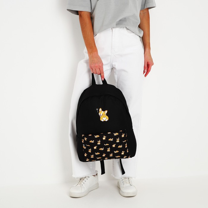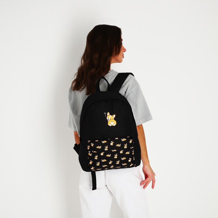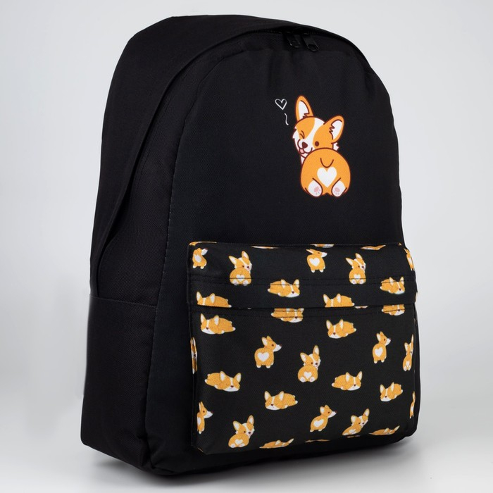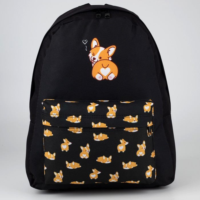 Рюкзак школьный молодёжный «Корги», 33х13х37 см, отдел на молнии, н/карман, чёрный