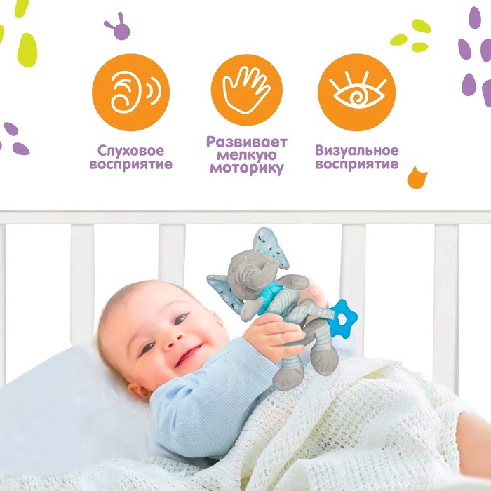Растяжка - спираль с игрушками дуга на коляску / кроватку для малышей 0+ «Слоник», цвет голубой, Крошка Я 504