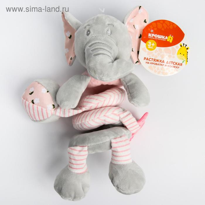 Растяжка - спираль с игрушками дуга на коляску / кроватку для малышей 0+ «Слоник розовый», Крошка Я
