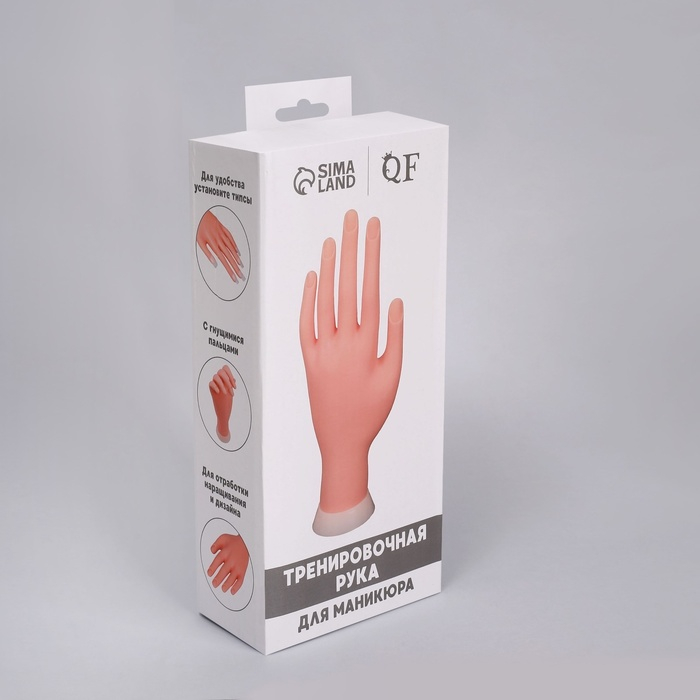 Рука тренировочная для маникюра, с гнущимися пальцами, в картонной коробке, цвет бежевый