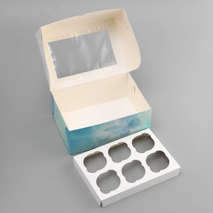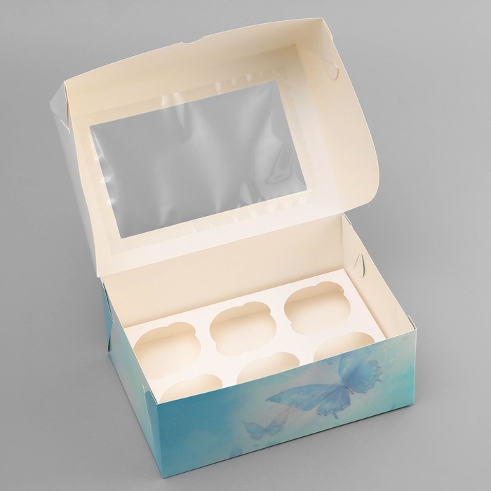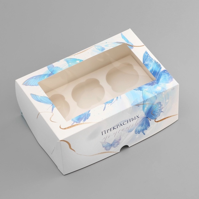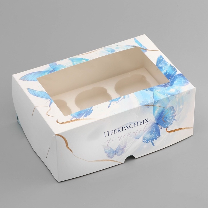 Коробка для 6 капкейков с окном , "Прекрасных моментов", 25 х 17 х 10 см, кондитерская упаковка