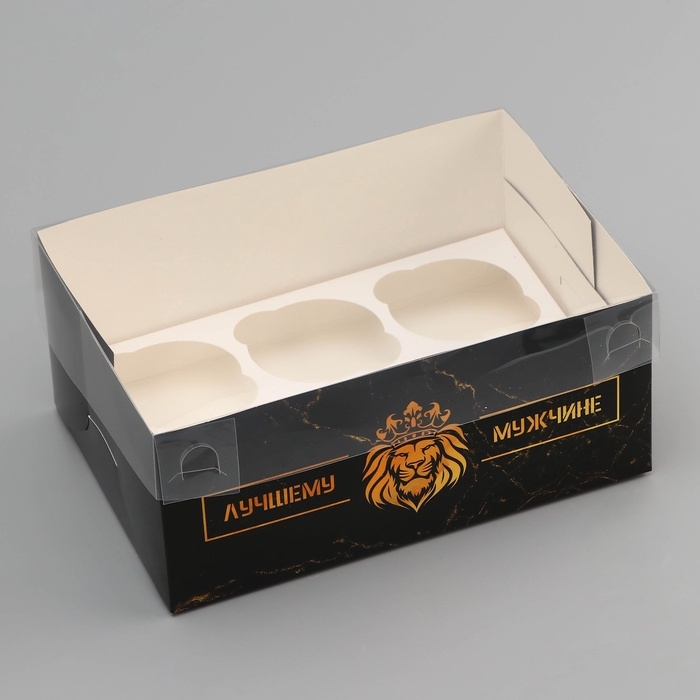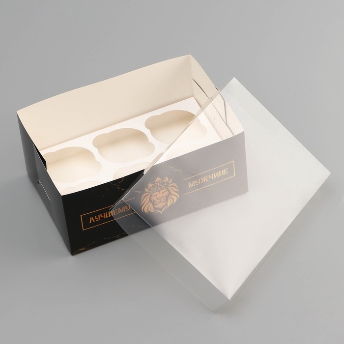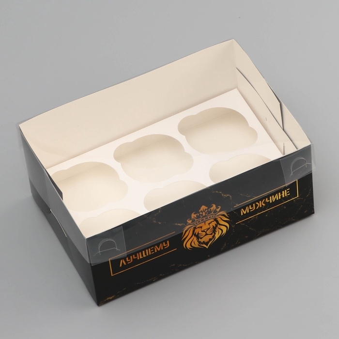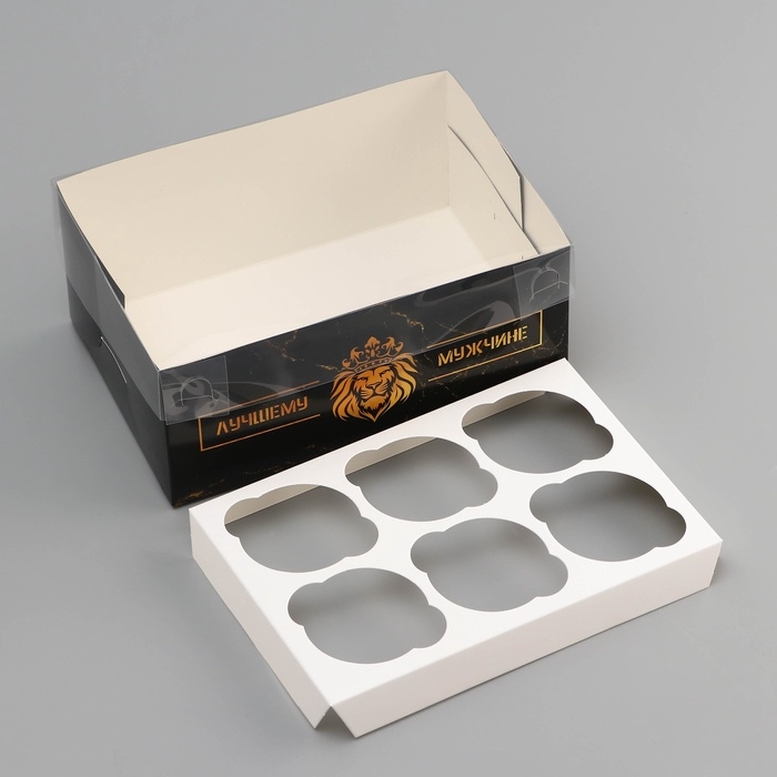 Коробка для 6 капкейков с прозрачной крышкой, "Лучшему мужчине", 23 × 16 × 10 см, кондитерская упаковка