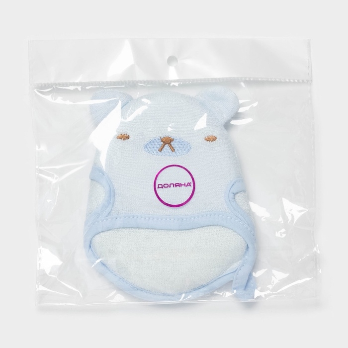 Мочалка варежка детская Доляна «Мишка», для купания, 16 см, голубая
