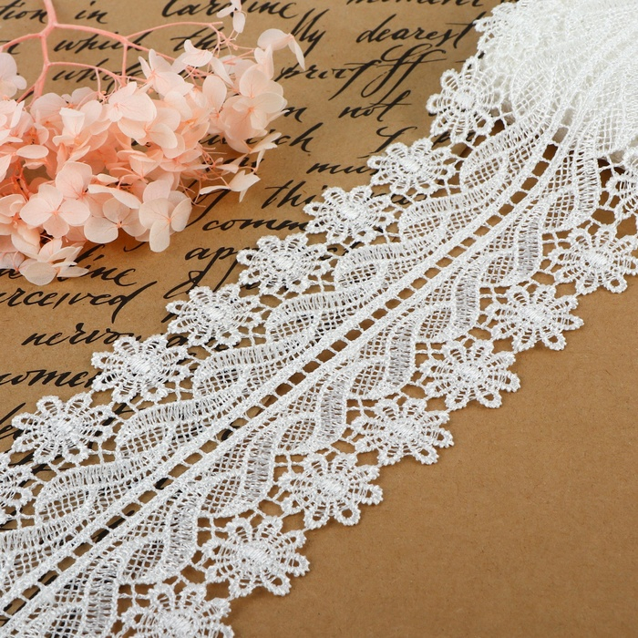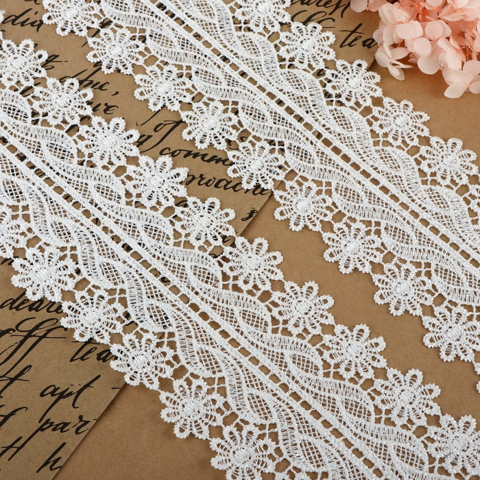 Кружево гипюровое, 15 мм × 14 ± 1 м, цвет белый
