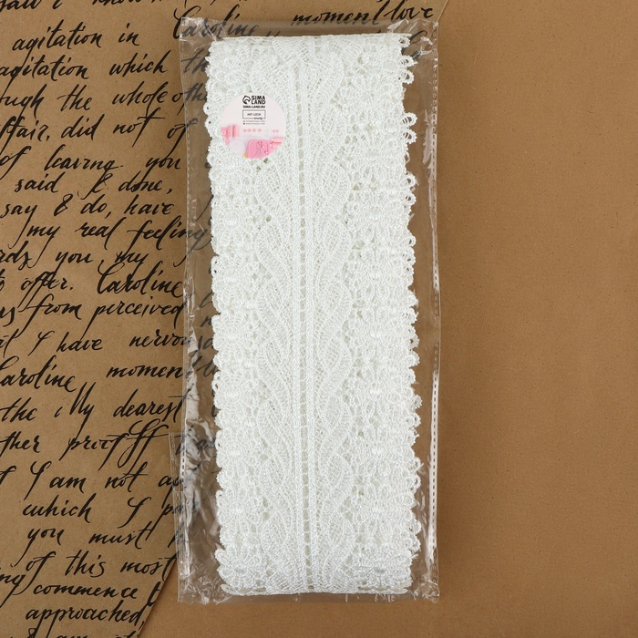 Кружево на сетке, 105 мм × 11 ± 1 м, цвет белый