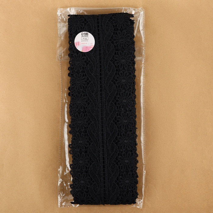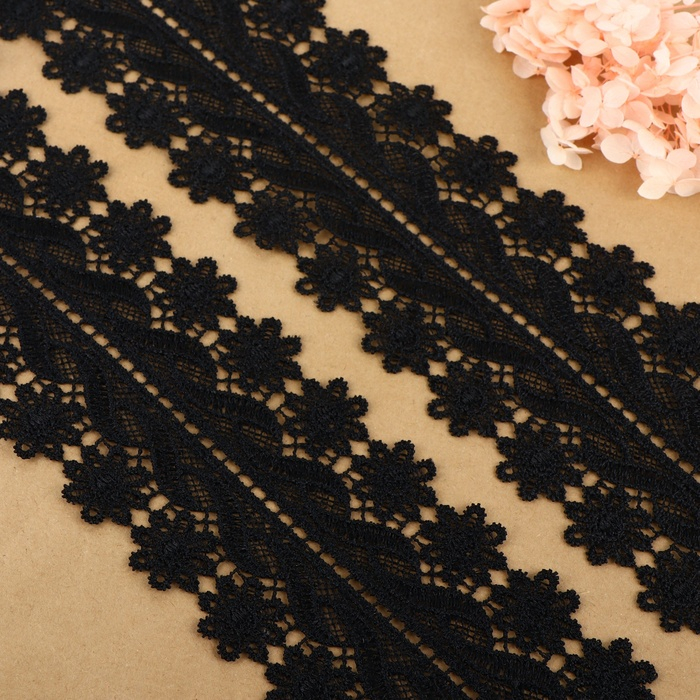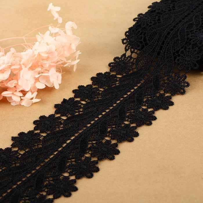 Кружево гипюровое, 80 мм × 6,8 ± 0,5 м, цвет чёрный