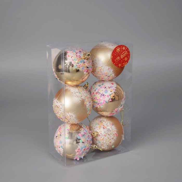 Ёлочные игрушки, шары новогодние , пластик, набор d-8 см, 6 шт "Новогодний восторг" золото