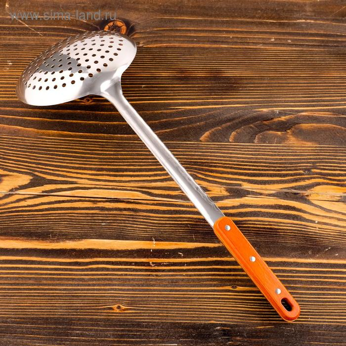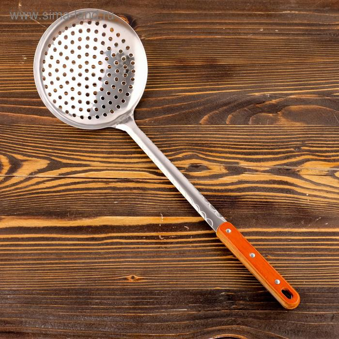 Шумовка для казана узбекская 43см, диаметр 16см, с деревянной ручкой