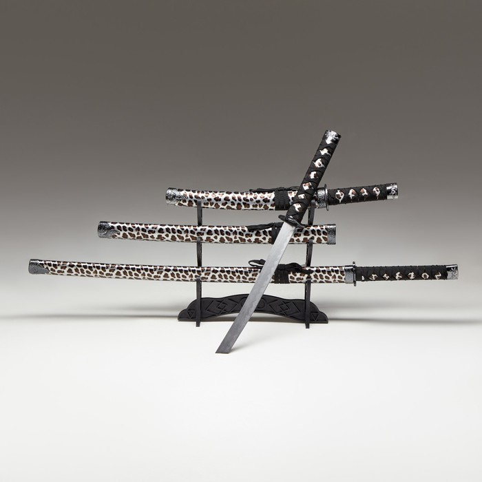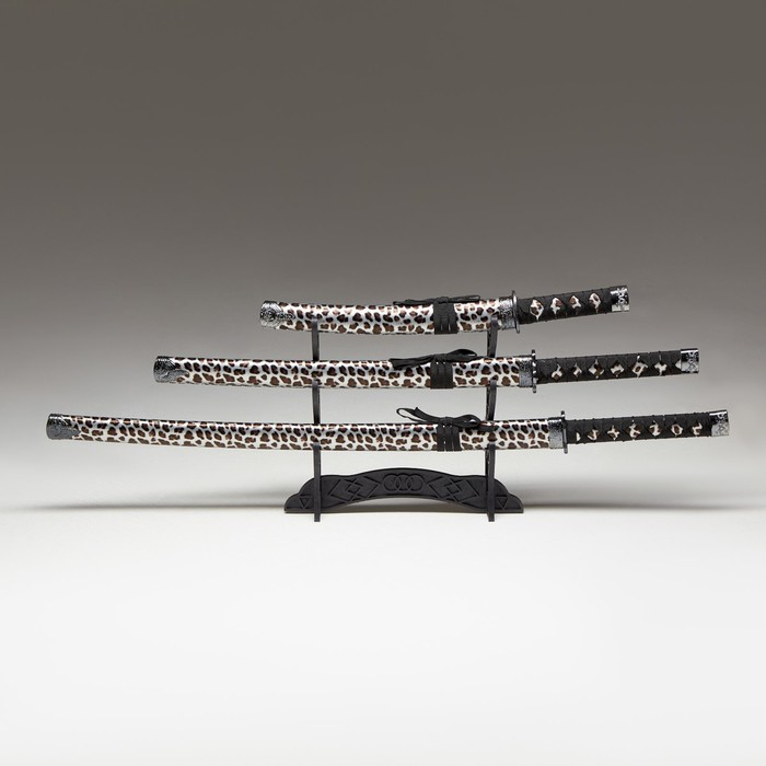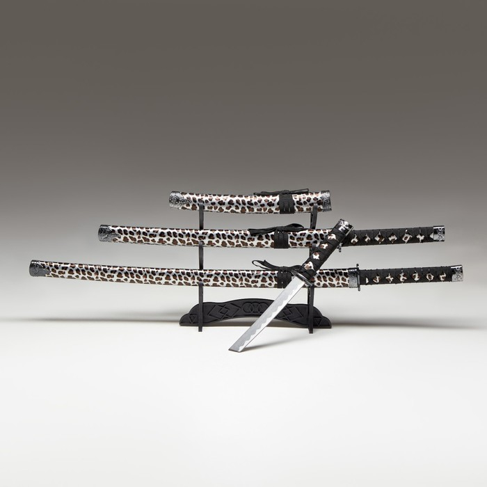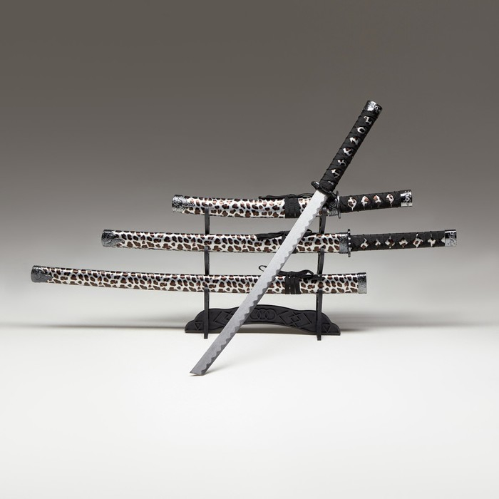 Сув. изделие катаны 3в1 на подставке, ножны кожзам, леопард серый 47/70/89см