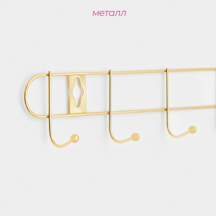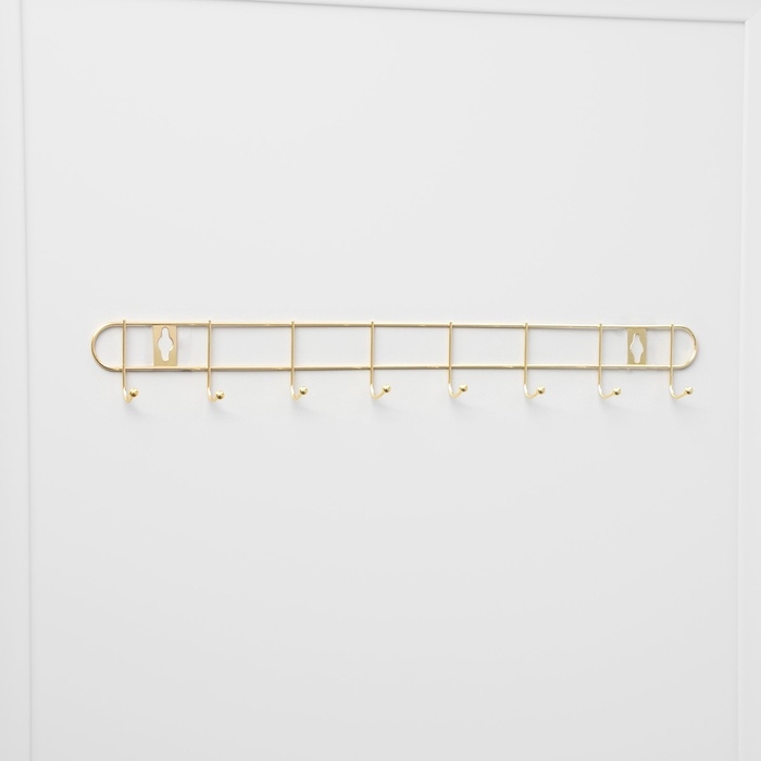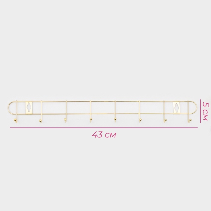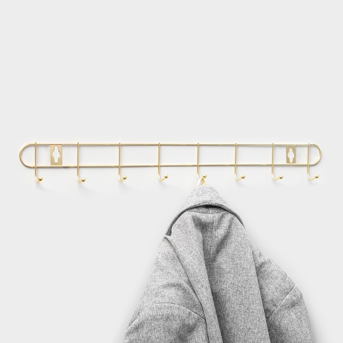 Вешалка настенная Доляна «Лайт», 10 крючков, 43×5×3 см, золотая