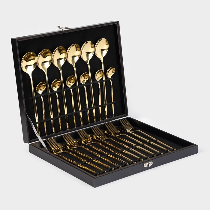 Столовые приборы из нержавеющей стали «Оску», 24 предмета, в коробке, цвет золотой