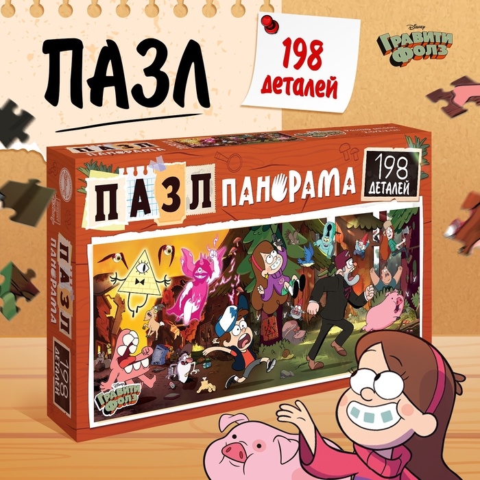Пазл панорама «Странногеддон» — это занимательная развивающая игра с любимыми персонажами Гравити Фолз, которая стимулирует познавательную активность и помогает упорядочить мысли.