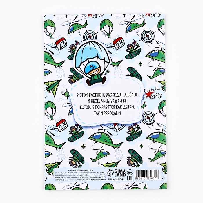 Блокнот с заданиями А5, 12 л "с 23 февраля. Паттерн"