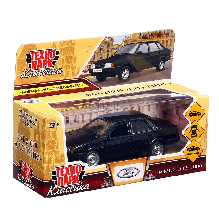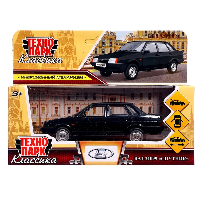 Машинка металлическая LADA-21099, ретро - модель «СПУТНИК», открываются двери, багажник, инерция, 12 см, чёрный