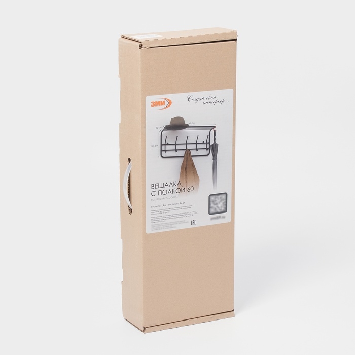 Вешалка с полкой 60 см, цвет Коричневый