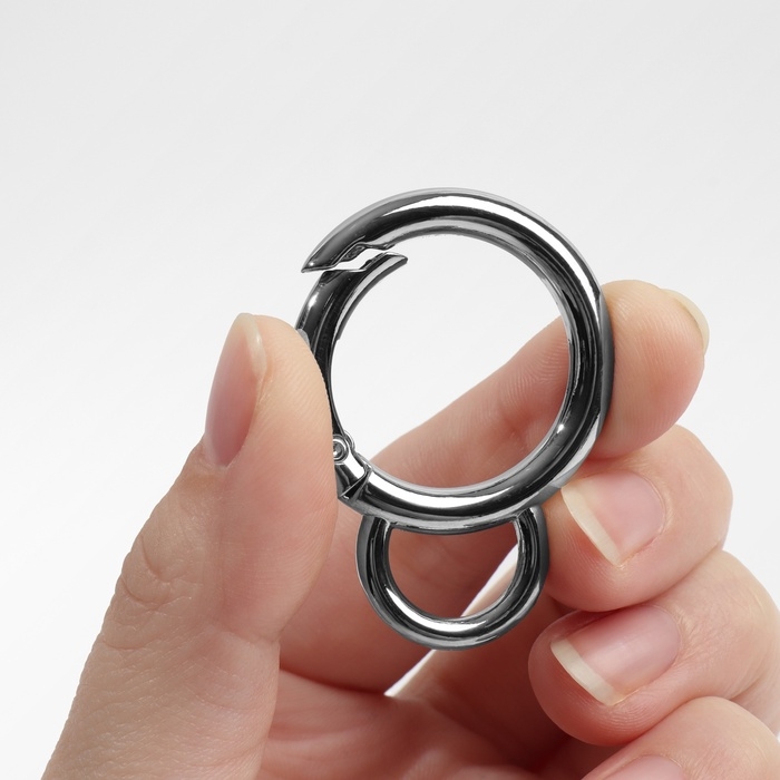 Кольцо-карабин, двойной, d = 25/35 мм, толщина - 5 мм, с креплением 12 × 3 мм, 5 шт, цвет серебряный