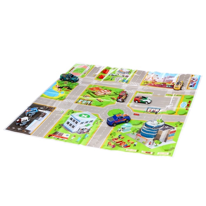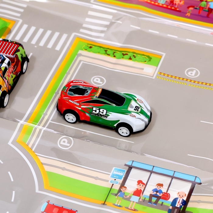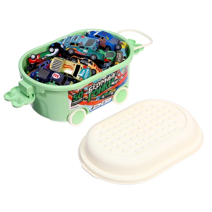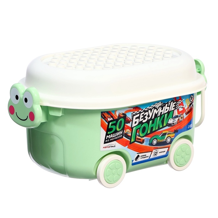 Набор машинок «Безумные гонки», металлические, инерция, игровой коврик, в детском ящике на колёсах с крышкой, 50 шт.