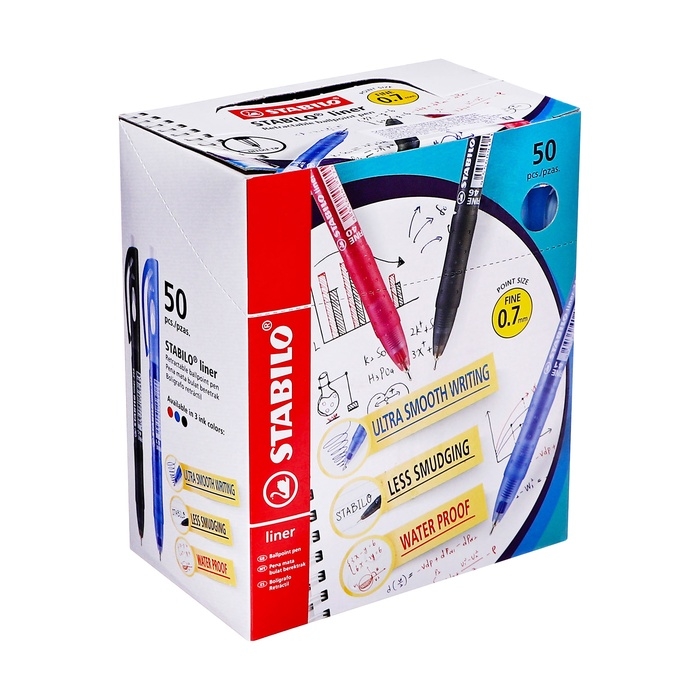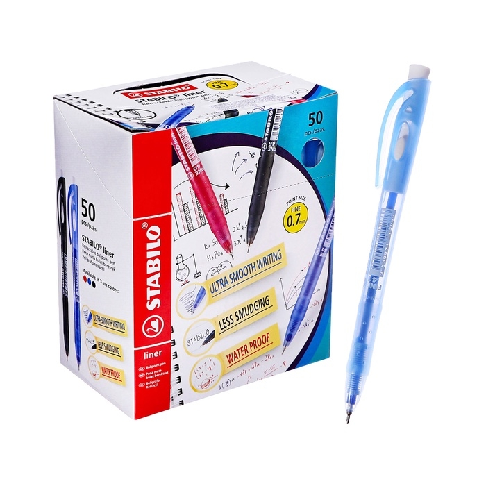 Ручка шариковая автоматическая Stabilo Liner 348F, для письма, узел 0.7 мм, синяя