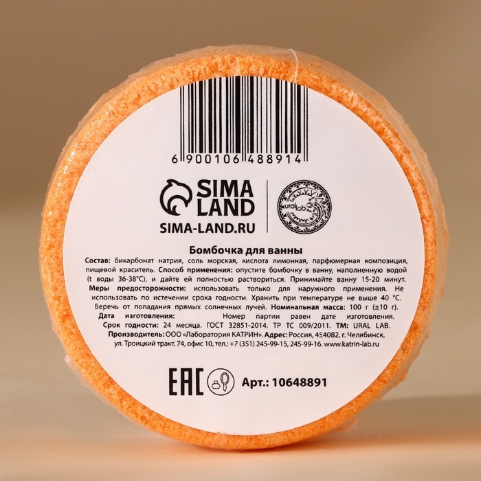 Бомбочка для ванн Fabrik Cosmetology с пенкой, дыня, 120 г