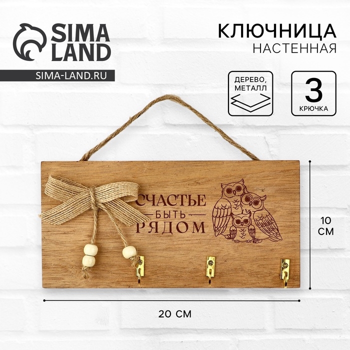 Ключница настенная «Счастье быть рядом», цвет бежевый, 20 х 10 см