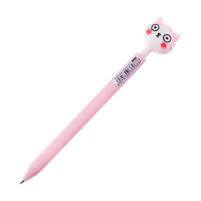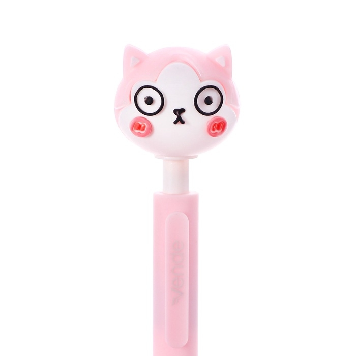 Ручка гелевая прикол Calligrata "Котик" автоматическая, узел 0.5 мм, синие чернила, розовая