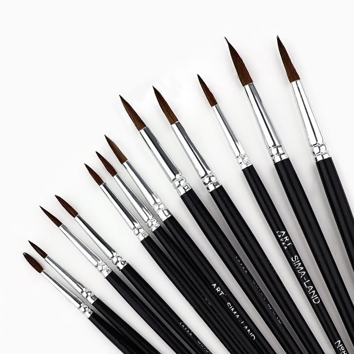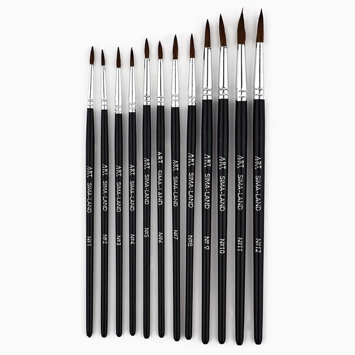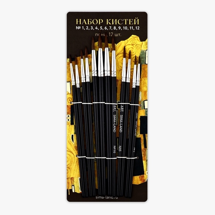 Кисть для рисования, набор пони круглые, 12 шт. № 1,2,3,4,5,6,7,8,9,10,11,12«Климт»