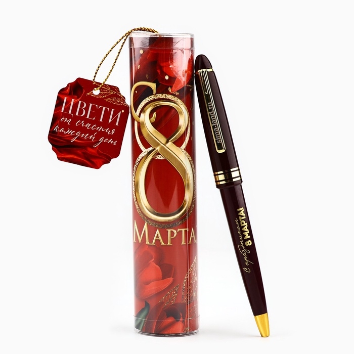 Ручка в красном тубусе "С 8 Марта", пластик
