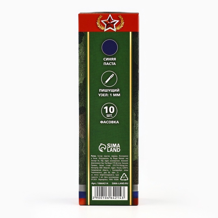 Ручка с колпачком "С Днём Защитника Отечества!", пластик, синяя паста, 1.0 мм