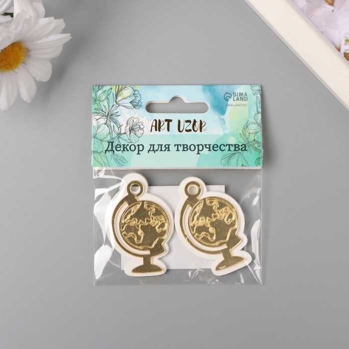 Декор для творчества дерево, пластик "Глобус" зеркальный набор 2 шт 3,4х5 см