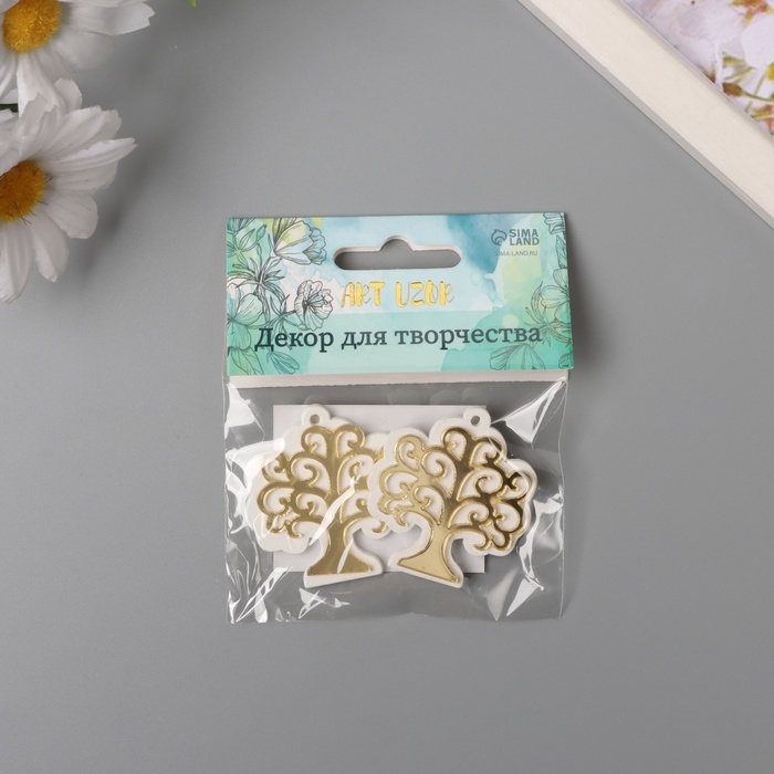 Декор для творчества дерево, пластик "Деревце" зеркальный набор 2 шт 4,1х4,8 см