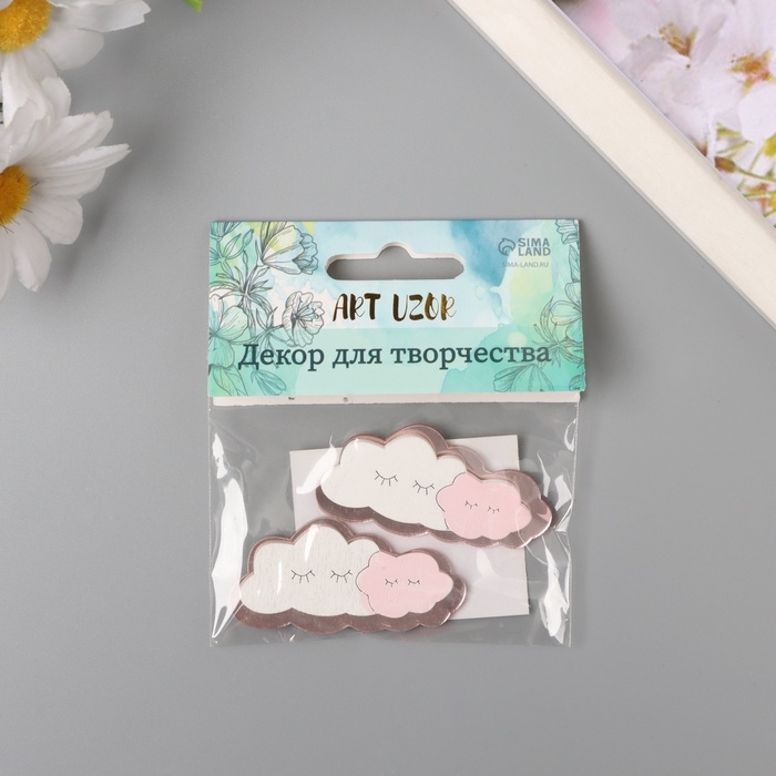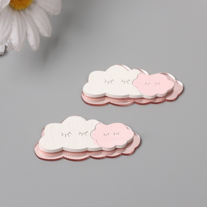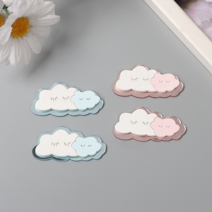 Декор для творчества дерево, пластик "Спящее облачко" зеркальный набор 2 шт 5,3х2,6 см МИКС