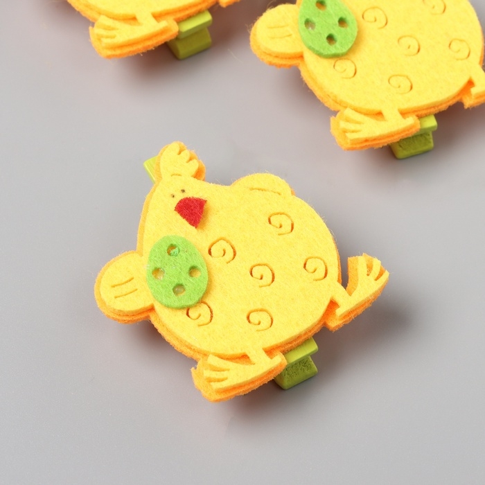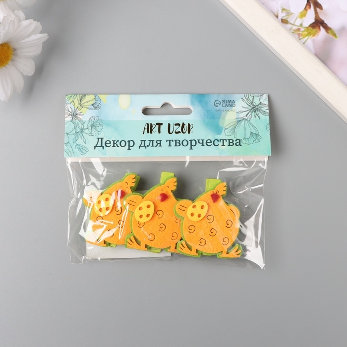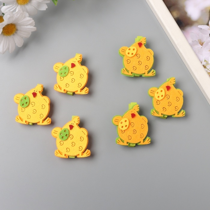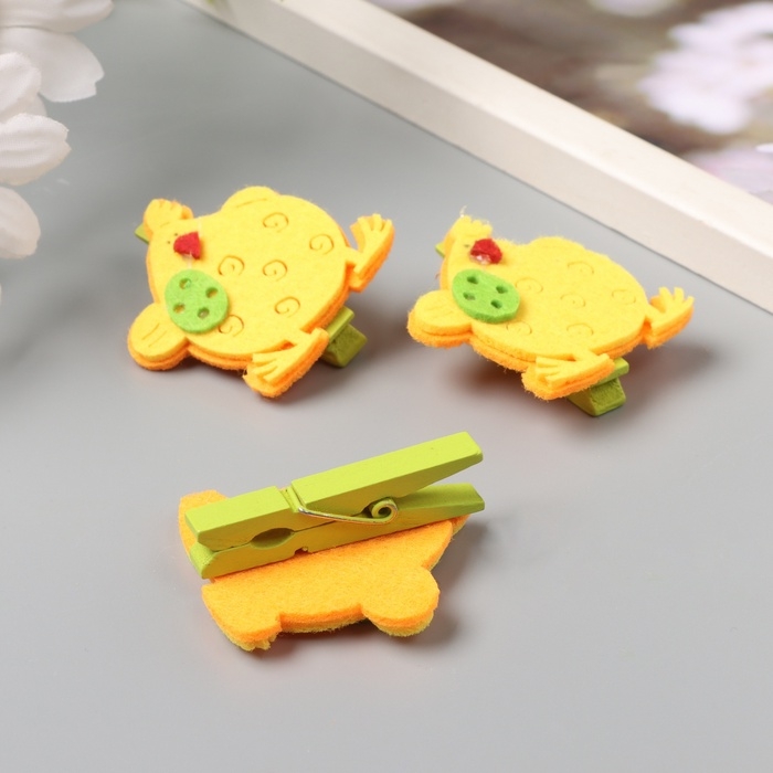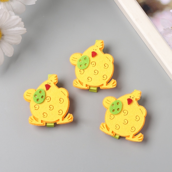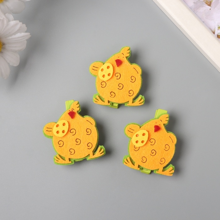 Декор для творчества дерево фетр "Прищепка. Курочка с яйцом" набор 3 шт 1,8х3,8х4,8 см МИКС