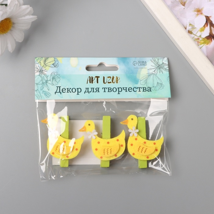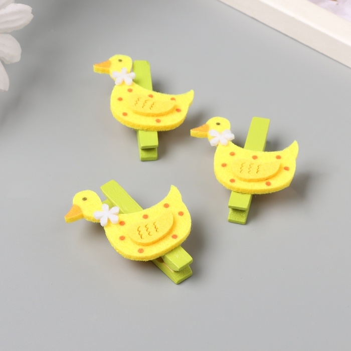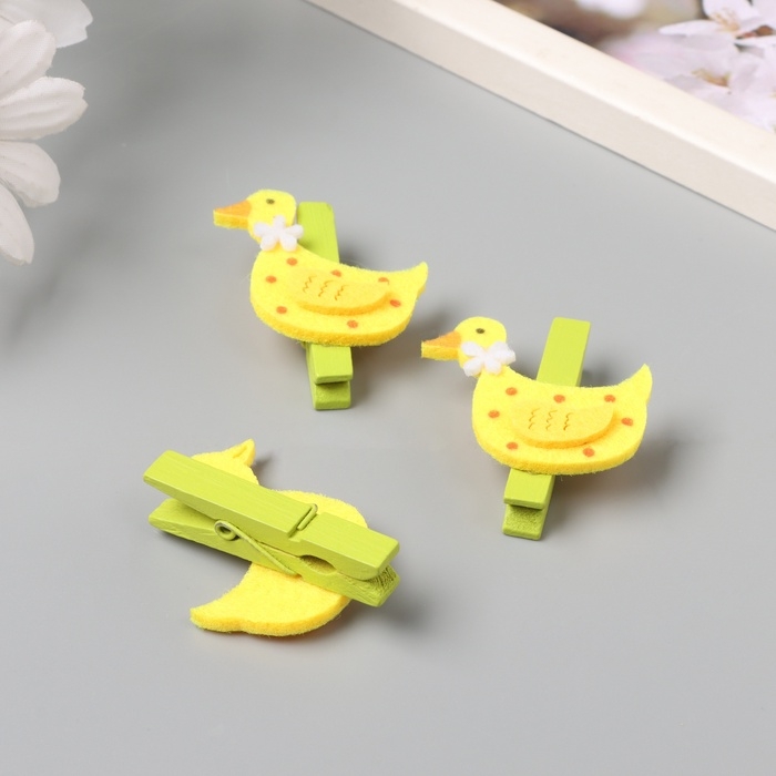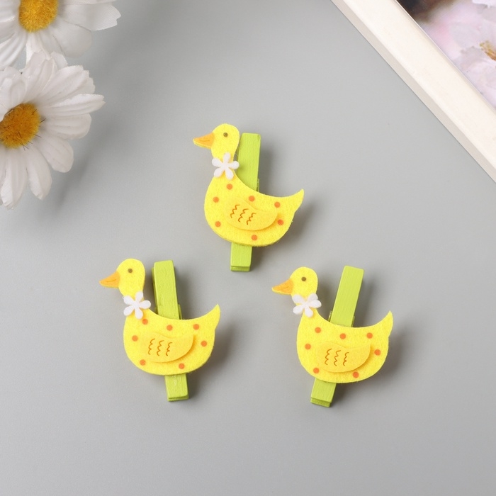 Декор для творчества дерево, фетр "Прищепка. Уточка с цветочком" набор 3 шт 1,8х4х4,9 см